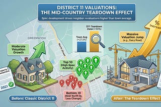 Spec development is back on certain District 11 streets with massive effect. The impact dragged many D11 neighbors' revaluations higher than the town…