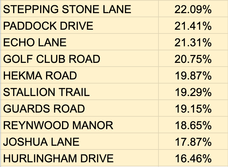 A big insight is the considerable impact teardown/rebuilds have had on select streets such as Dairy Road, which had several that completed and sold during the period. Streets like these seemed to have the biggest above average valuation increase.