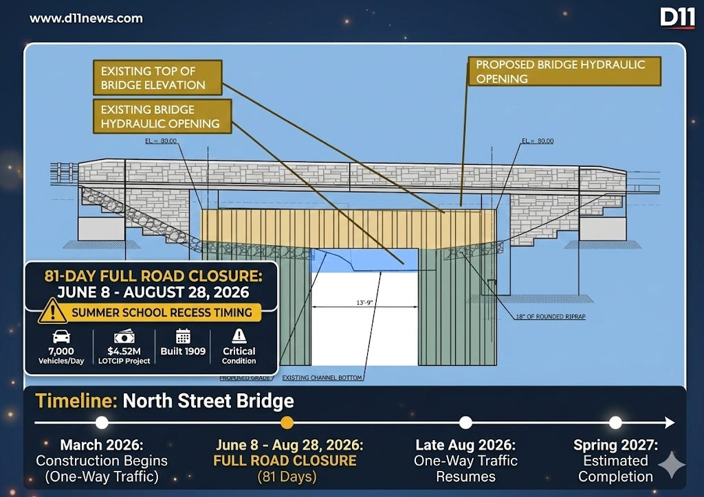 Construction begins this month on the North Street Bridge replacement — a project years in the making that will impact commutes for most District 11 residents and other who cross through D11 from now through Spring 2027.